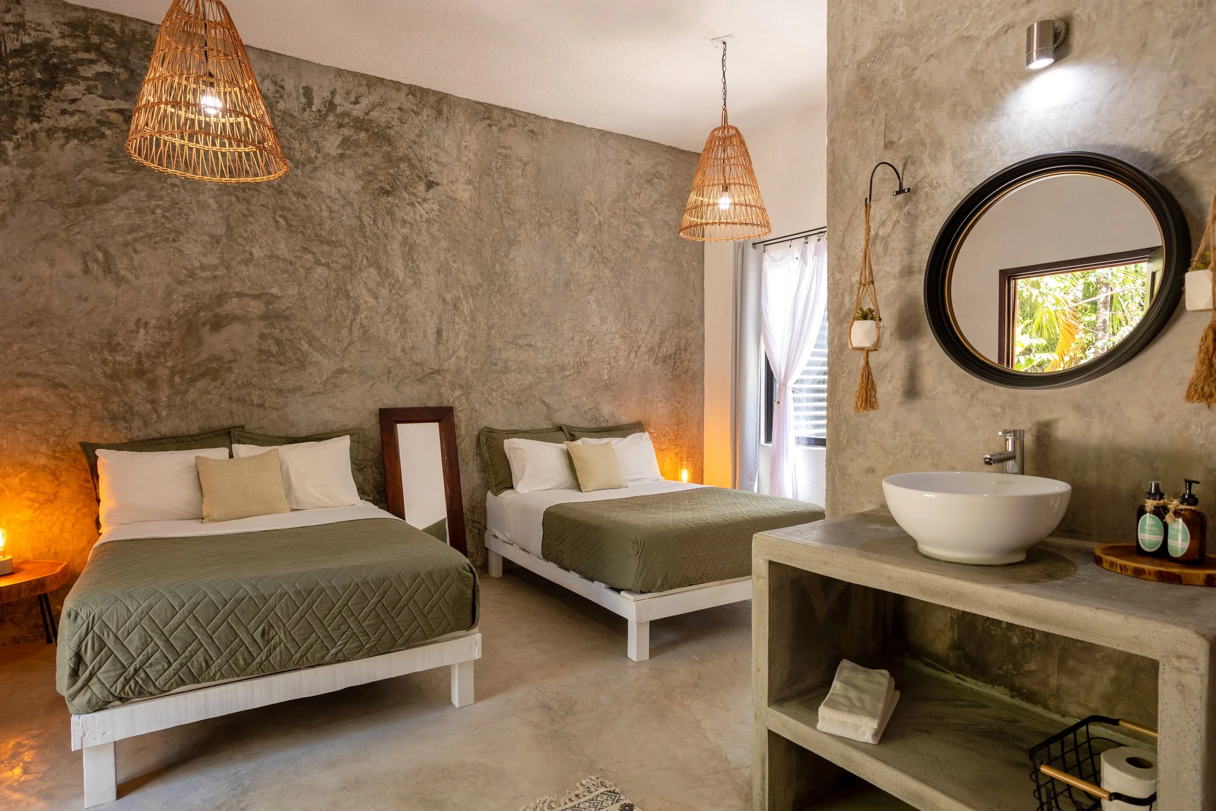 You’ll fly into Cancun International Airport (CUN). From there, we will arrange transportation to our Tulum property (approx. 1.5–2 hours). You’ll receive detailed travel instructions after booking.